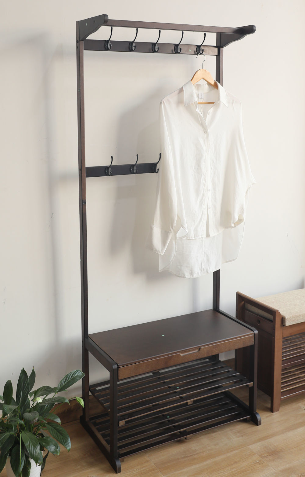 ▶ Creëer snel meer ruimte in de gang. De multifunctionele kledingstandaard biedt veel plek voor jassen, mantels en kleding. Hang je kleding met een hanger aan de kledingstang. Het garderoberek is tevens voorzien van een lade, en een legplank om bijvoorbeeld je schoenen op te zetten. Het kledingrek is zo opgebouwd dat het ook in kleinere gangen past.