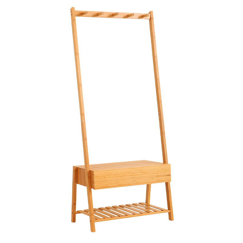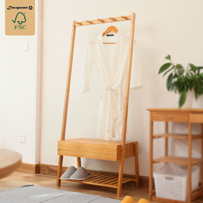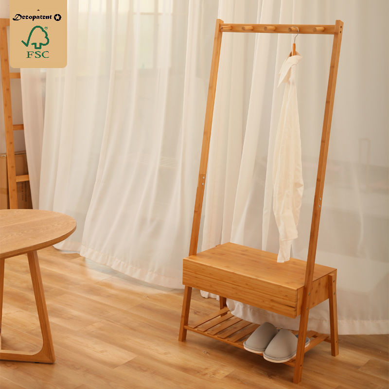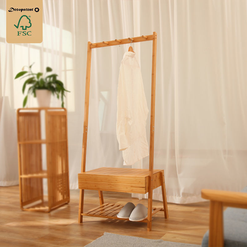 Decopatent Stevig staand bamboe garderoberek - Voorzien van kapstok, lade & legplank voor schoenen - kledingrek - bamboe houten kledingrek - staand garderoberek - kleding rek met schoenenrek - Decopatent®
