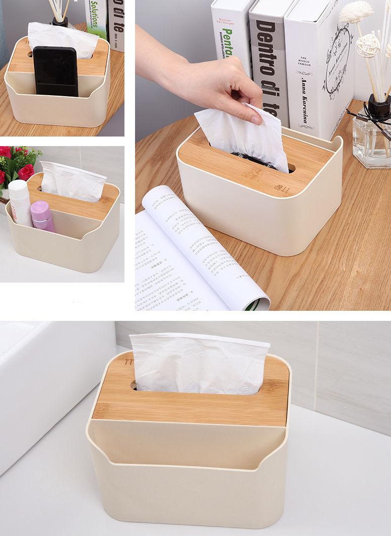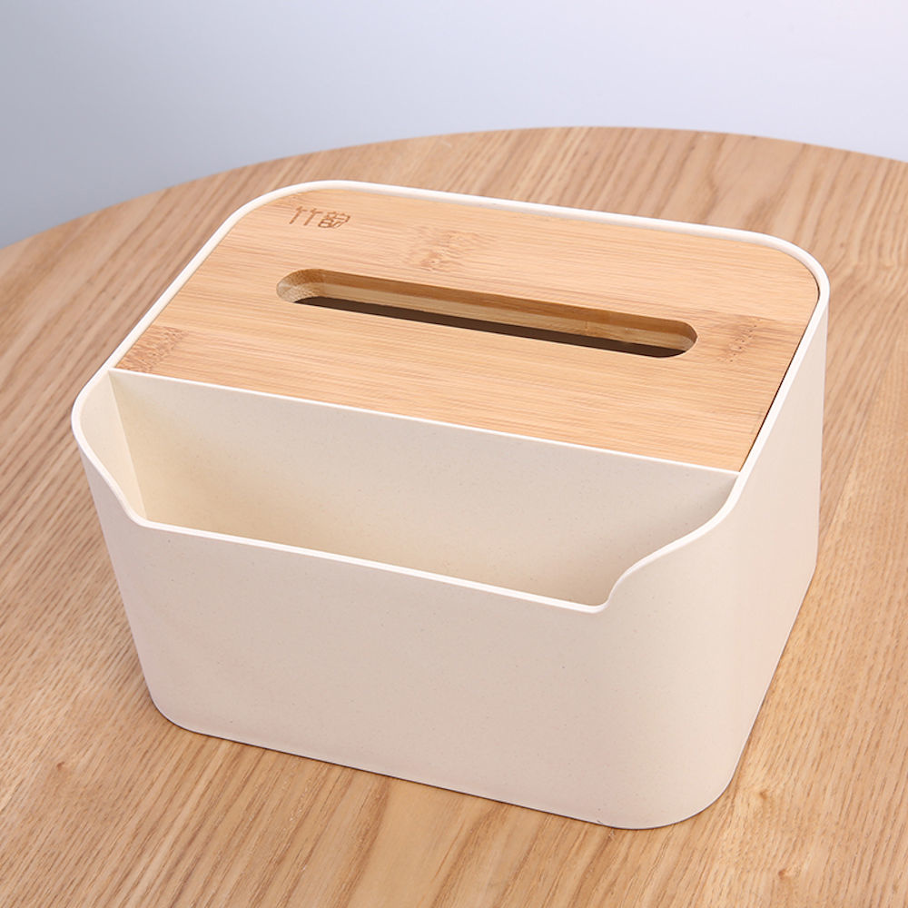 Deze tissue box is volledig gemaakt van kunstof en een deksel van hoogwaardig bamboe. Bamboe is van nature goed bestand tegen water. Het is dus niet erg als deze tissuehouder een beetje nat wordt. Wel zo handig bij gebruik in jouw badkamer of keuken.