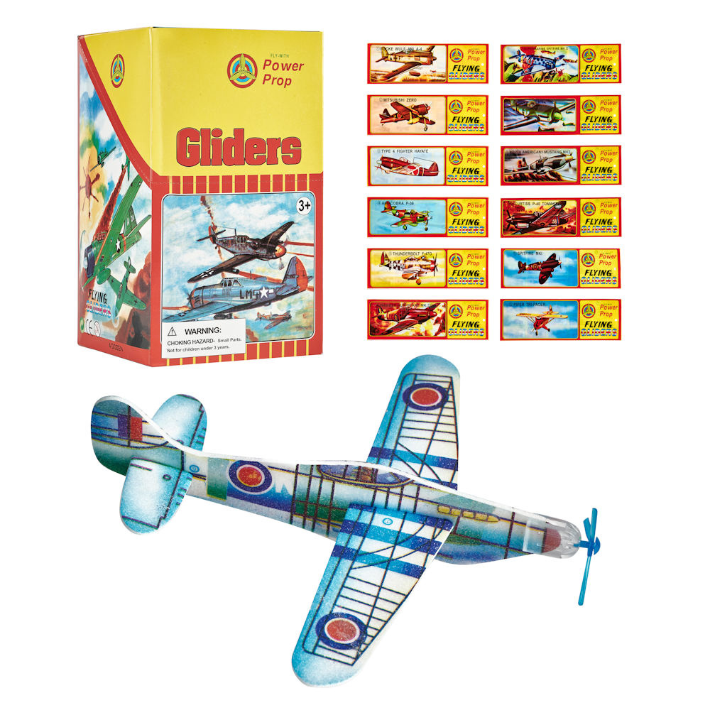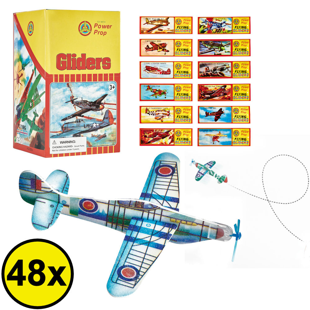 Decopatent Decopatent® 48 Stuks Foam Vliegtuigen - Uitdeelcadeautjes - Fighter Gliders vliegtuig - Zweefvliegtuigen - Model: Foam Vliegtuig in Display