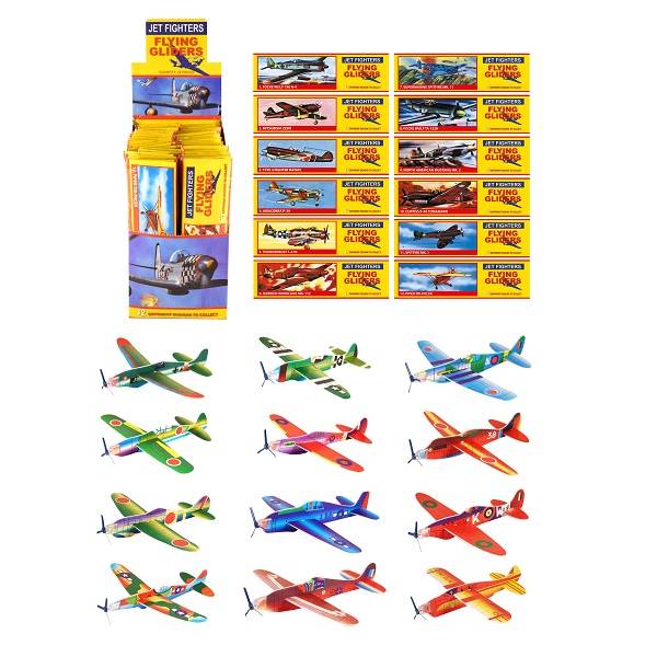 Henbrandt 48 Stuks - Uitdeelcadeautjes - Fighter Gliders vliegtuig - Zweefvliegtuigen - Model: Foam Vliegtuigen in Display