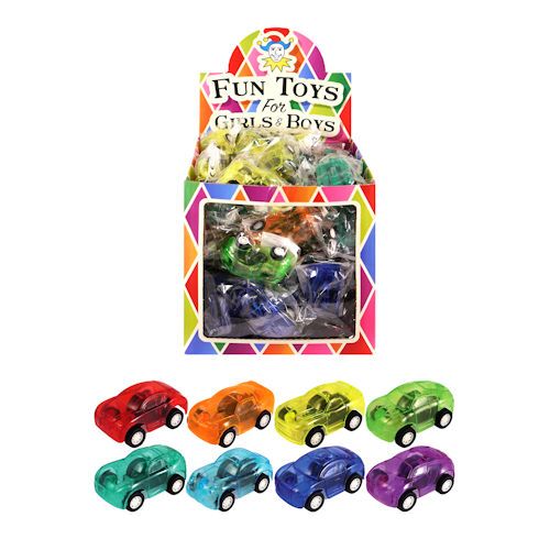 Leuke gekleurde pull back auto's. Trek ze naar achteren en laat ze los.. vervolgens rijden ze vanzelf naar voren. Worden in mix kleuren geleverd in een mooie Traktatie- / Uitdeelbox.