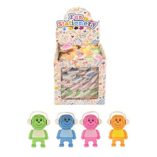 Gummen model: Aap met koptelefoon op. Wordt in Mix kleuren geleverd in een mooie Traktatie- / Uitdeelbox.