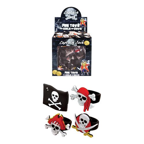 Silicone kinderringen, model: Piraten. Worden in Mix design Piraten geleverd in een mooie Traktatie- / Uitdeelbox.
