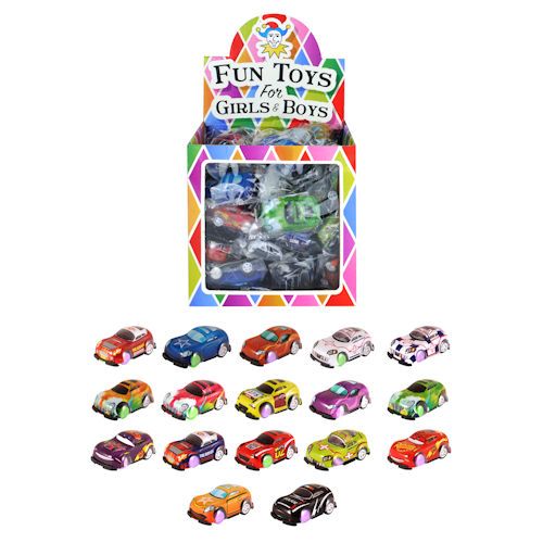 Stoere kleine pull back auto's. Trek ze naar achteren en laat ze los.. vervolgens rijden ze vanzelf naar voren. Afmetingen: 5 x 3.5 x 2 Cm. Worden in mix kleuren geleverd in een Traktatie- / Uitdeelbox.