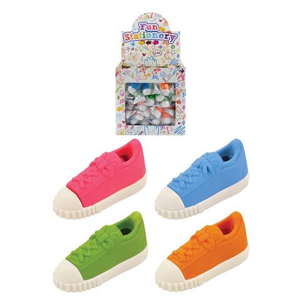 Leuke stoere sneaker schoenen gummen. Worden in Mix kleuren geleverd. Verpakt in een mooie Traktatie- / Uitdeelbox.