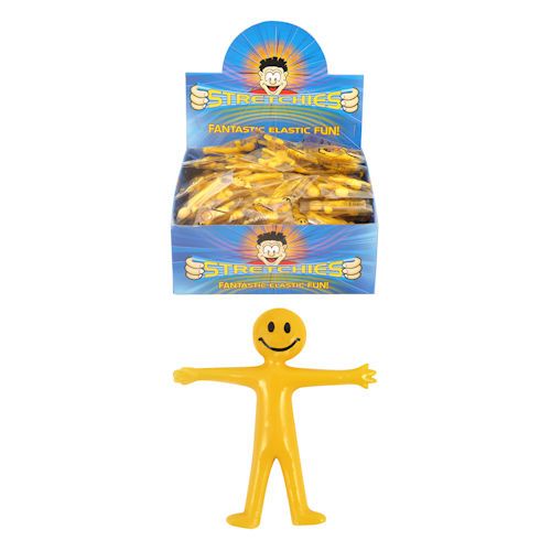 Erg grappig deze uittrekbare strech Smiley poppetjes. Neem het smiley poppetje tussen je beide vingers en maak hem zo lang mogelijk.Verpakt in een mooie display.