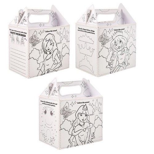 Henbrandt 24 STUKS | Uitdeeldoosjes voor kinderfeestje, Model: PRINCESS om ZELF in te kleuren | Traktatie Box | Menubox | Lunchbox | Meisjes | Afm. 18x14x9.5 Cm. | (24 stuks)