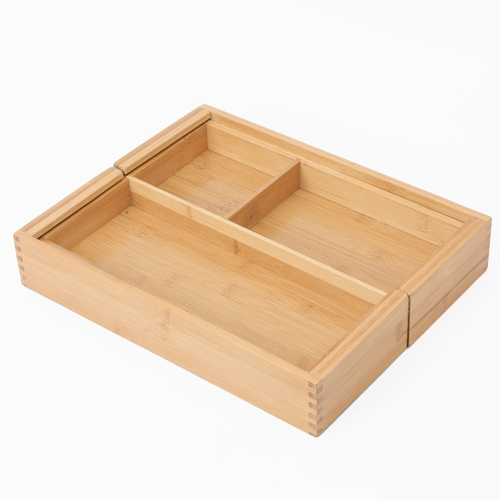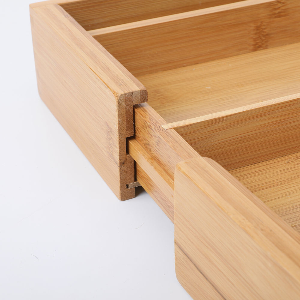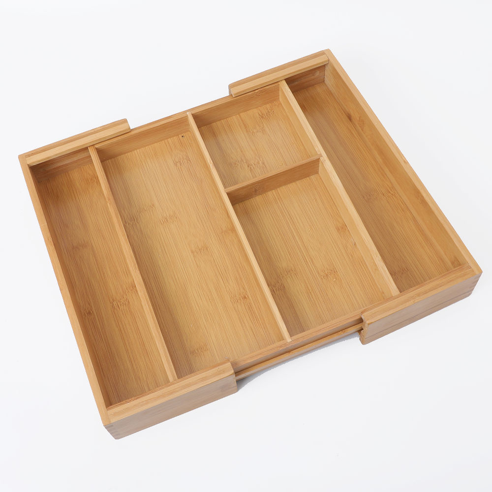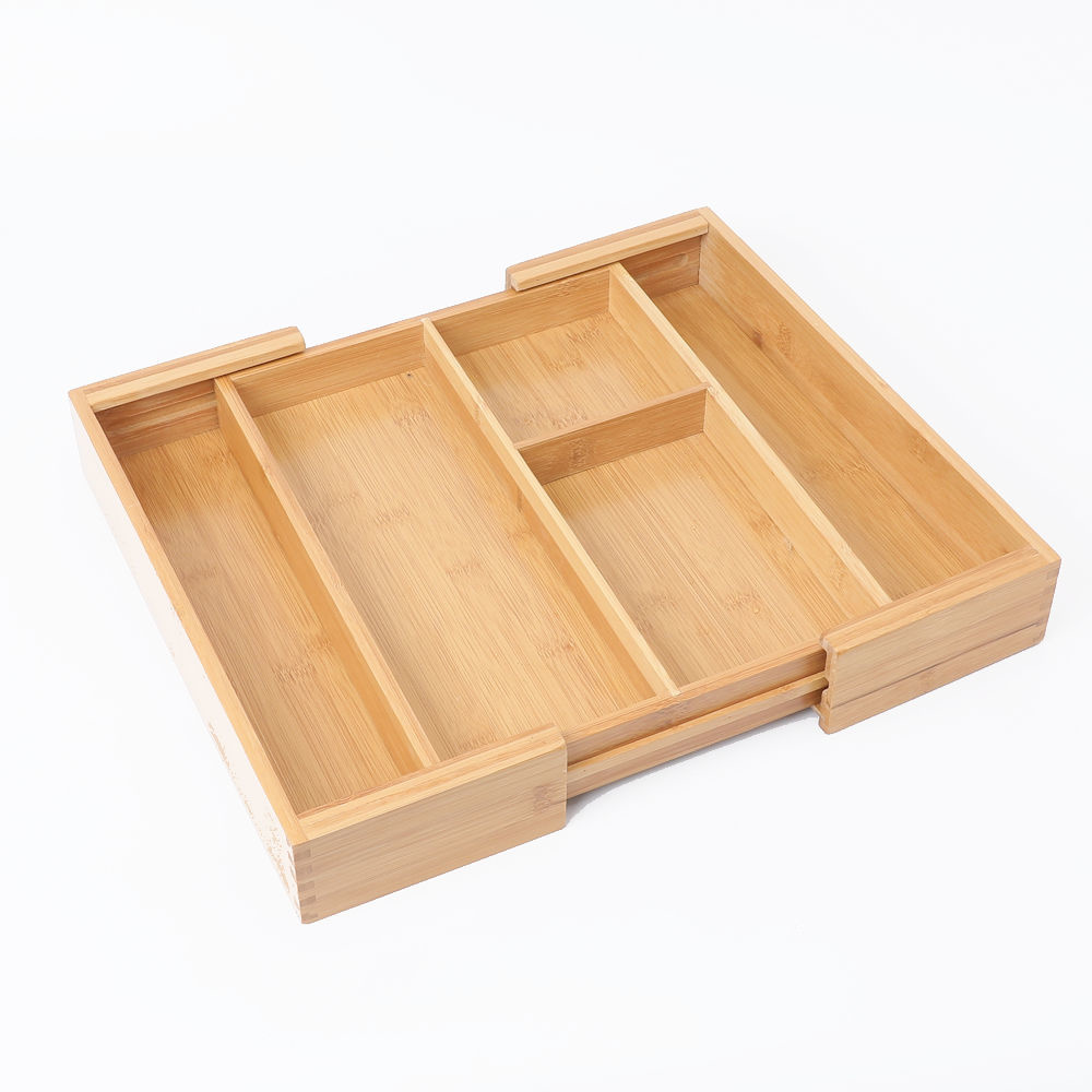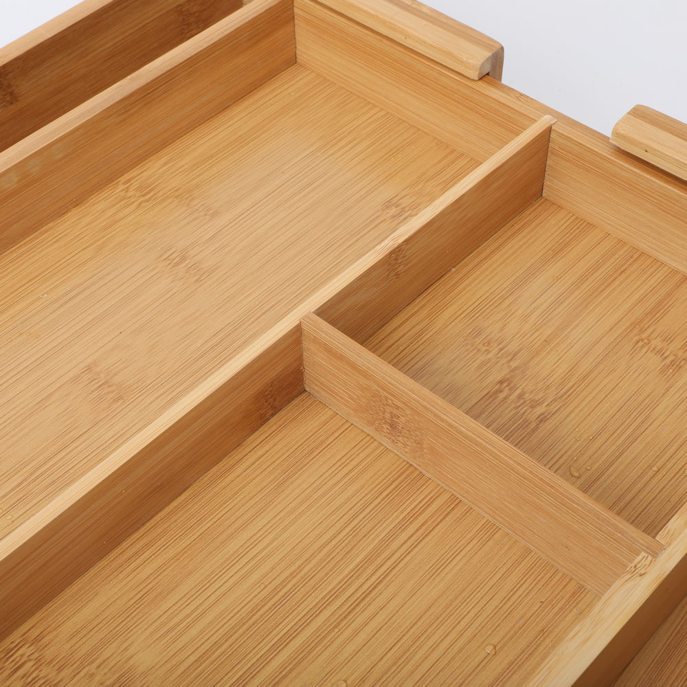 Super handige uitschuifbare bestekbak van bamboe met 3 tot 5 vakken. Ideaal om je keukenlade te organiseren!