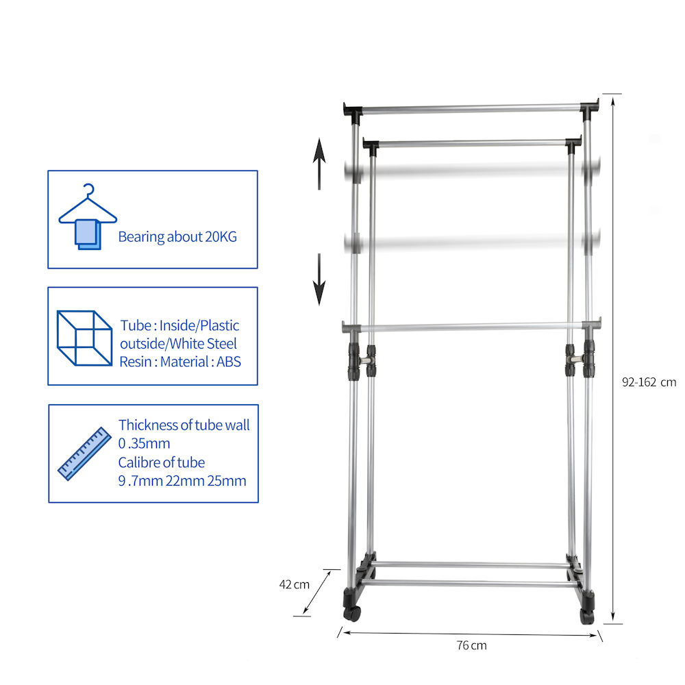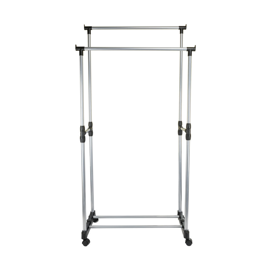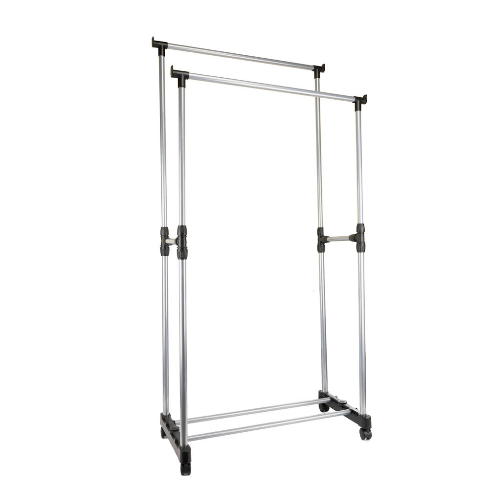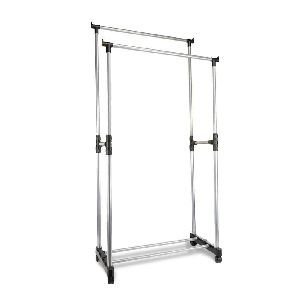 ✅ Verrijdbaar mobiel dubbel kledingrek met 4 wieltjes.