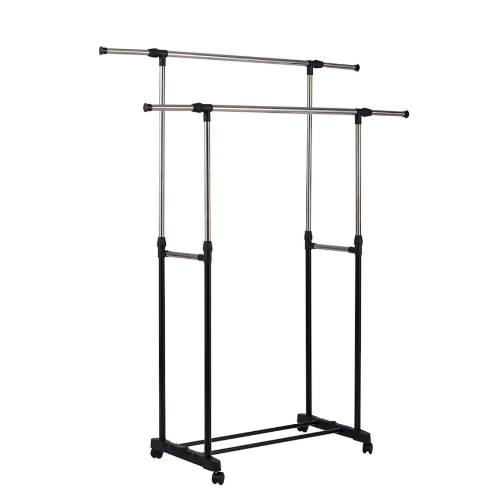 ✅ Verrijdbaar mobiel dubbel kledingrek met 4 wieltjes.