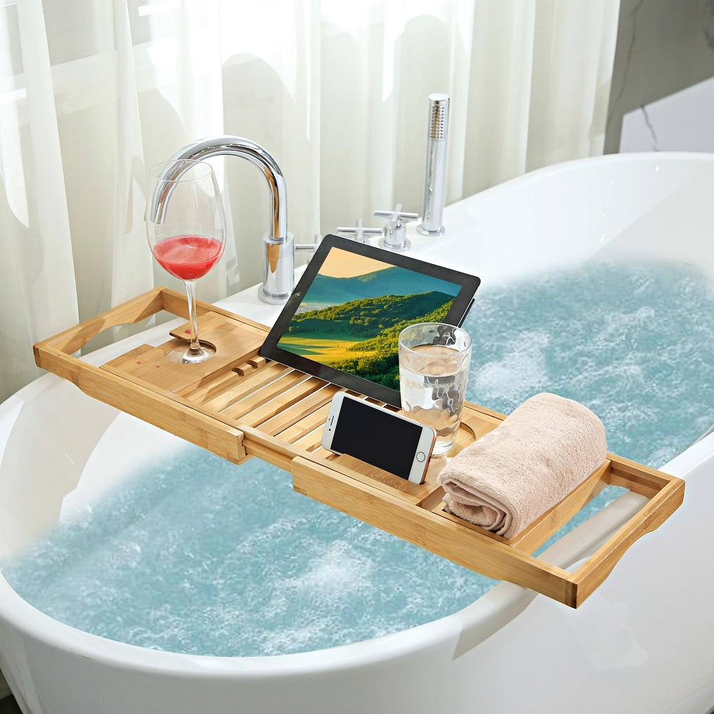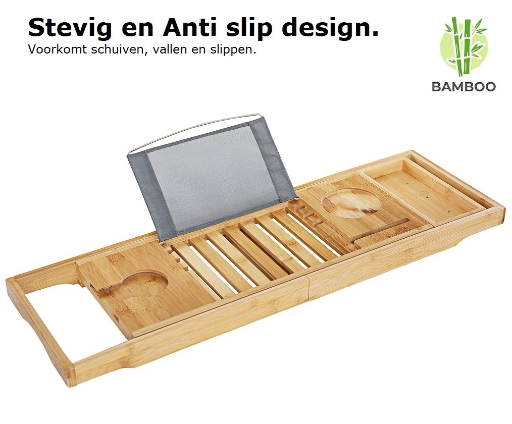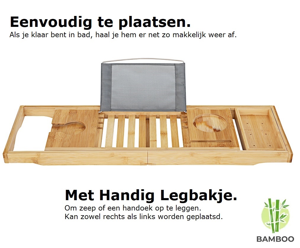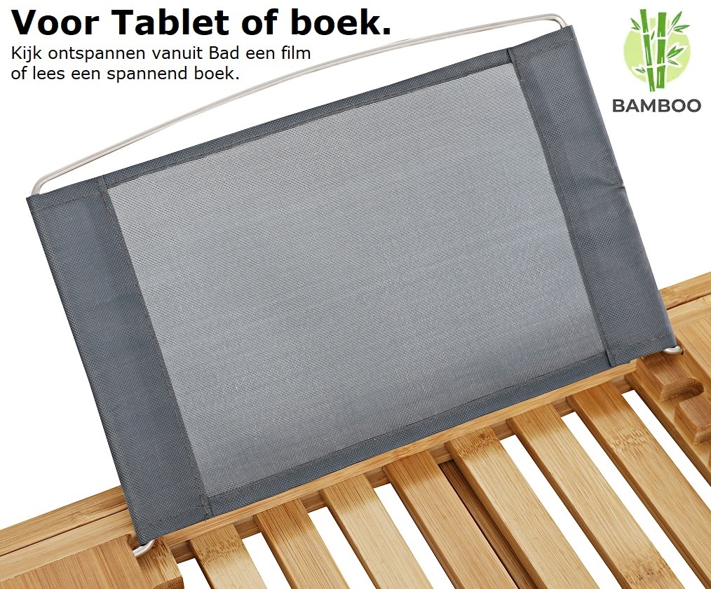 Heerlijk ontspannen in bad wordt nog lekkerder met dit mooie verstelbare bamboe badrekje. Voor o.a Telefoon, Tablet, Boek en Wijn.