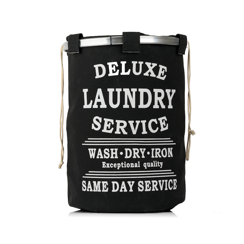 Decopatent Wasmand 50L - Rond - Tekst Deluxe Laundry Service -> Same Day Service- Badkamer - Wasmand afsluitbaar - Waszak - Zwart