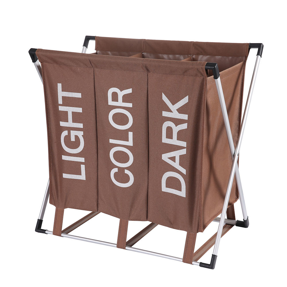 Decopatent Wassorteerder 3 Vakken voor Donkere / Lichte & Gekleurde was - 90 Liter - Opvouwbaar frame -Wasmand 3 Vakken - Badkamer Wassorteerder met 3 vakken - Waszak om was te sorteren op kleur - Kleur: BRUIN - Decopatent®