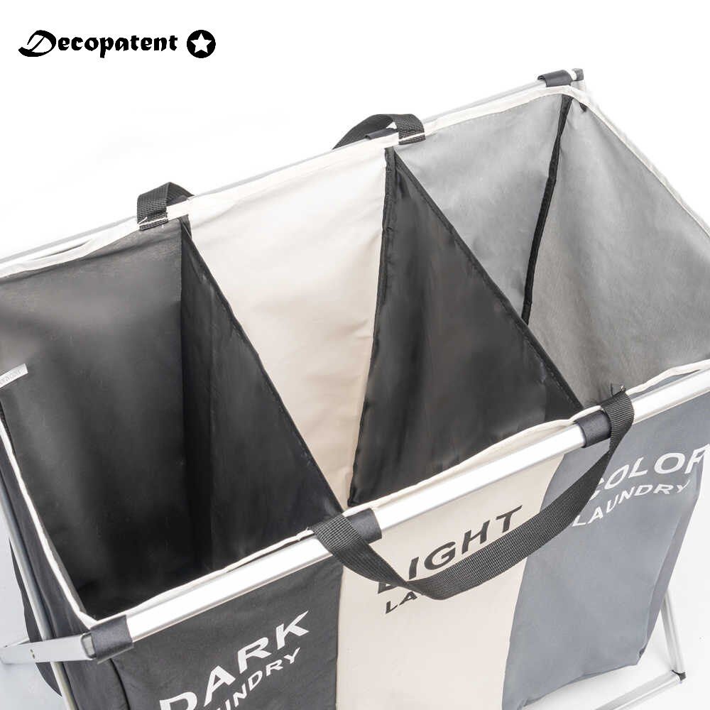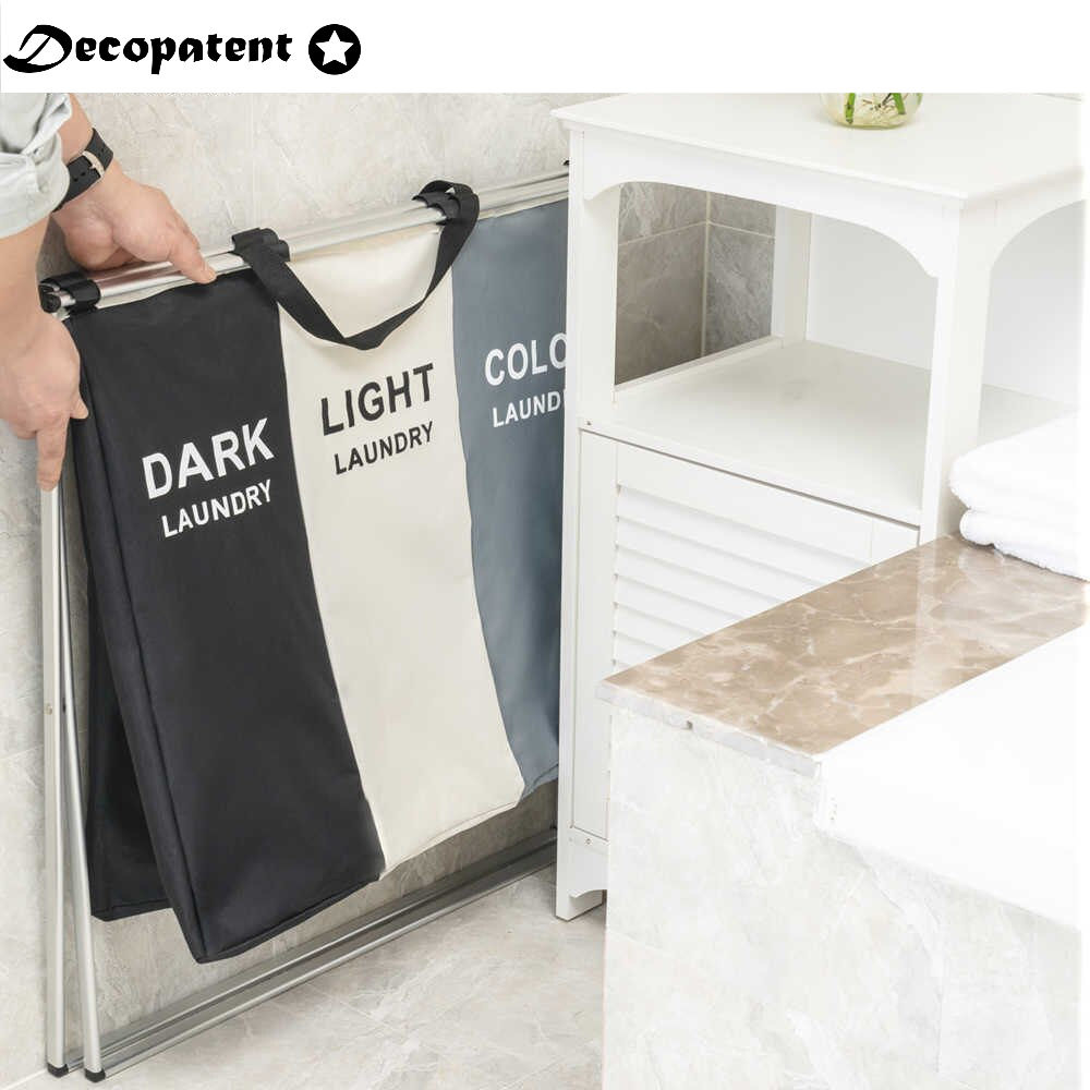 Decopatent Wassorteerder 3 Vakken voor Donkere / Lichte & Gekleurde was - 90 Liter - Opvouwbaar frame -Wasmand 3 Vakken - Badkamer Wassorteerder met 3 vakken - Waszak om was te sorteren op kleur - Kleur Zwart / Wit / Grijs - Decopatent®