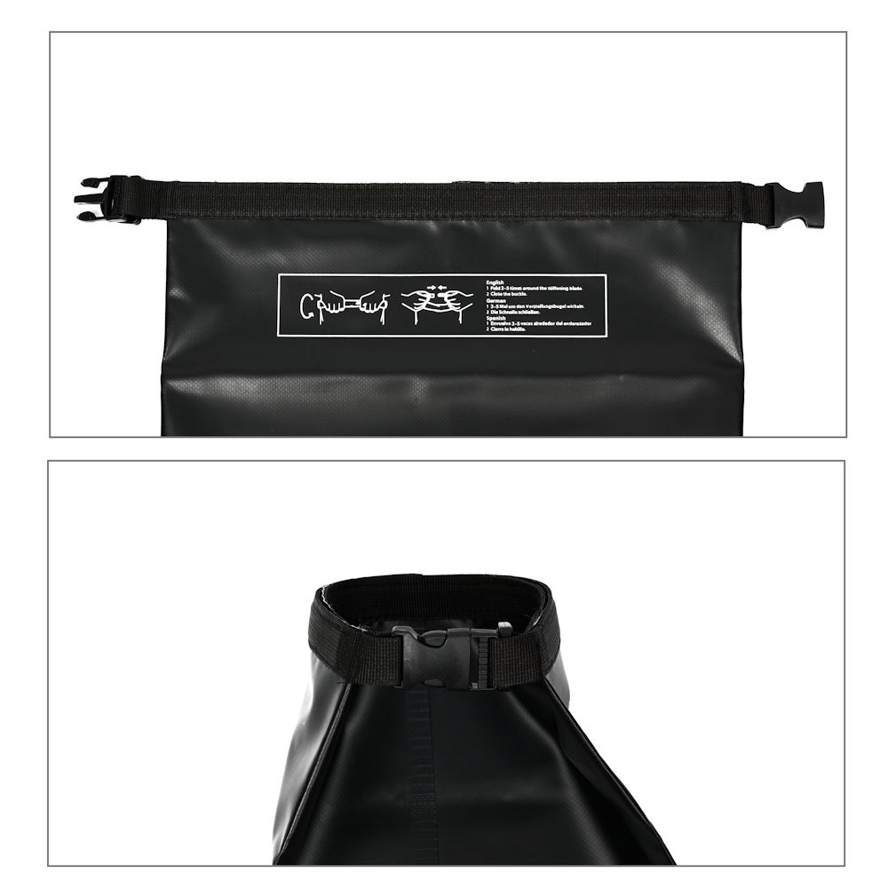 Dankzij de verstelbare schouderriem kan de dry bag tas als rugtas of schoudertas gedragen worden. Omdat de dry bag is voorzien van karabijnhaak is het eenvoudig om deze dry bag vast te maken aan andere objecten.