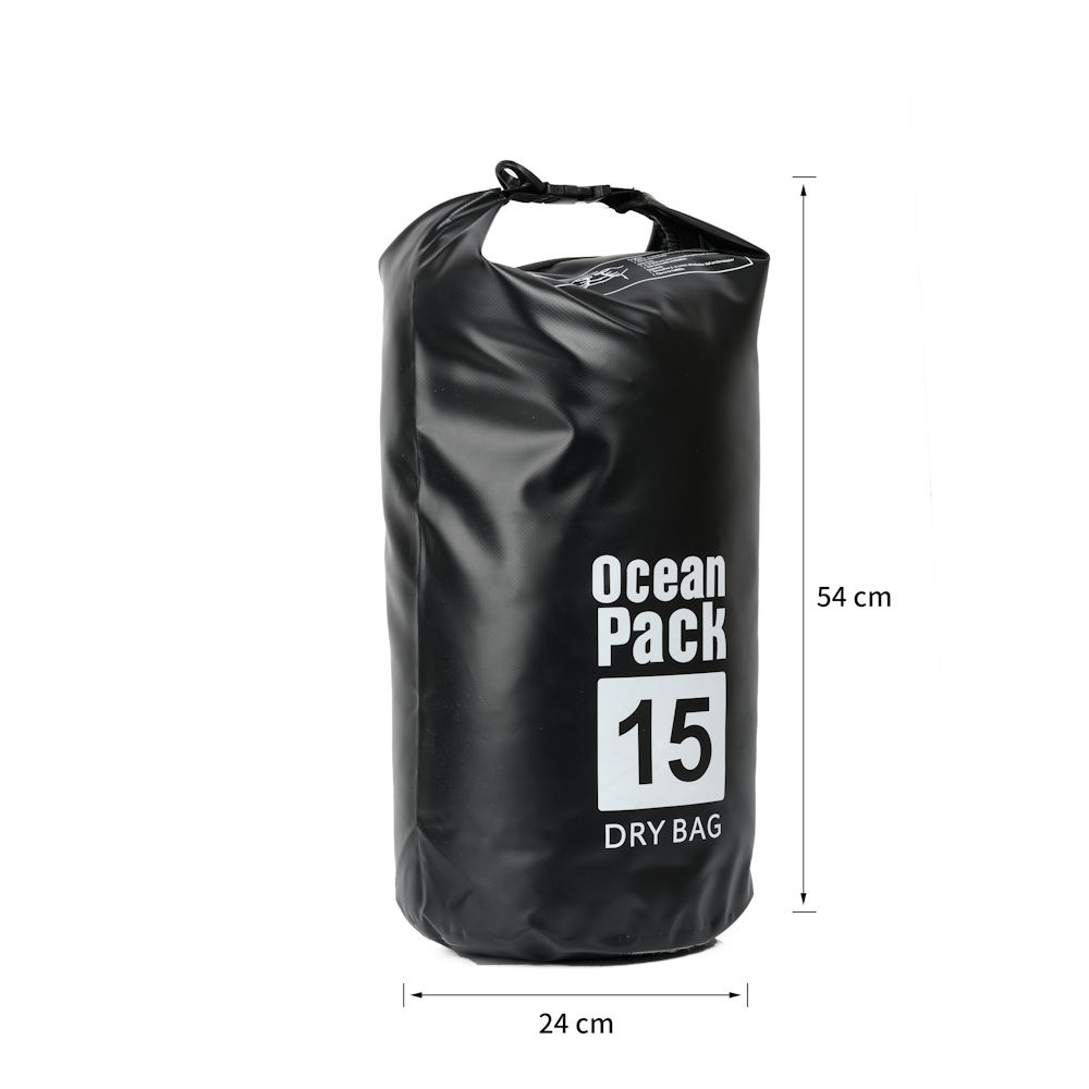 Decopatent Waterdichte Tas Ocean Pack 15L - Waterproof Dry Bag Sack - Schoudertas Droogtas 100% Waterdicht - Survival Outdoor Drybag Rugzak - Survival Bag plunjezak - Outdoor Tas - Reistas - Boottas - Zeiltas - Drybags 15 Liter - Kleur: ZWART - Decopatent®