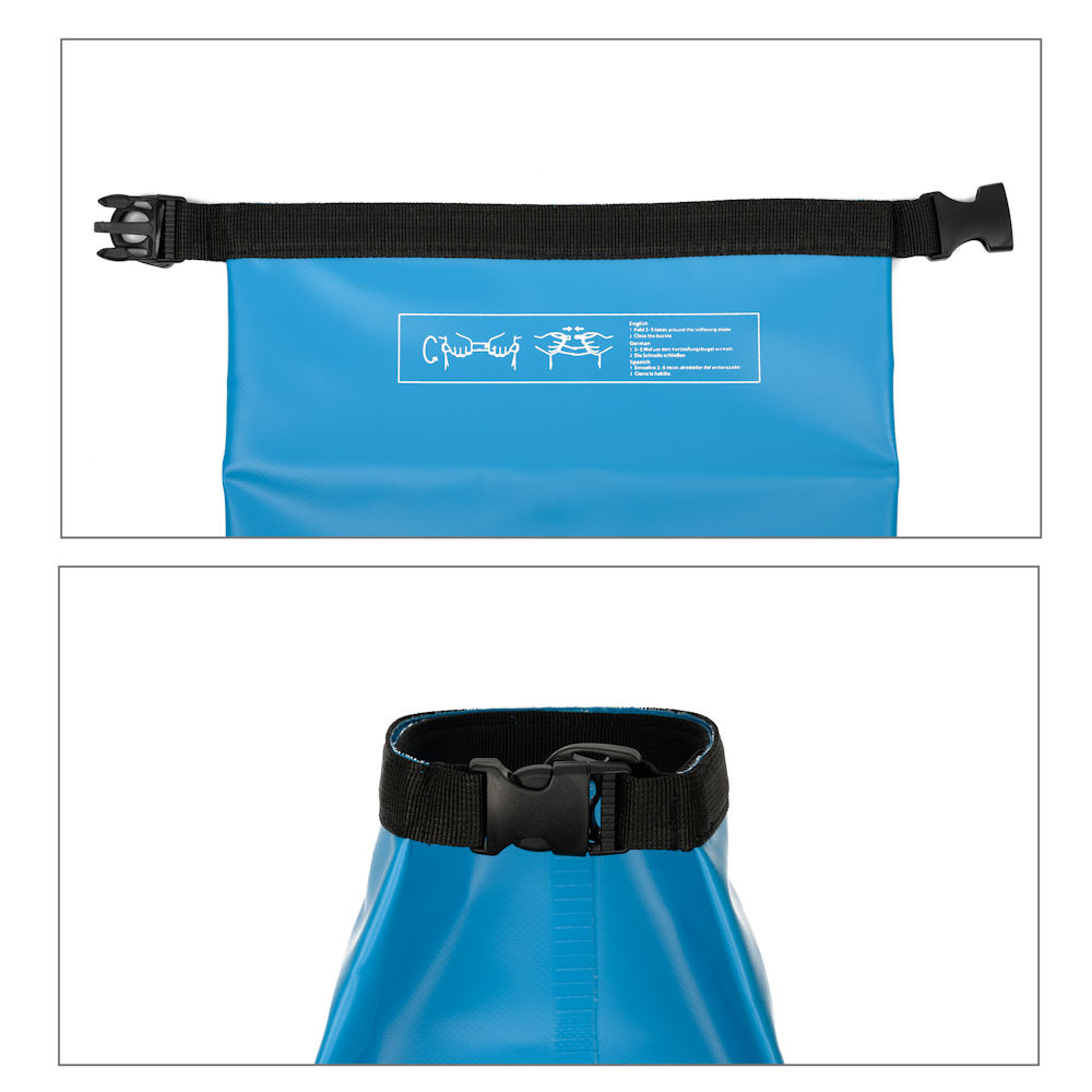 Dankzij de verstelbare schouderriem kan de dry bag tas als rugtas of schoudertas gedragen worden. Omdat de dry bag is voorzien van karabijnhaak is het eenvoudig om deze dry bag vast te maken aan andere objecten.