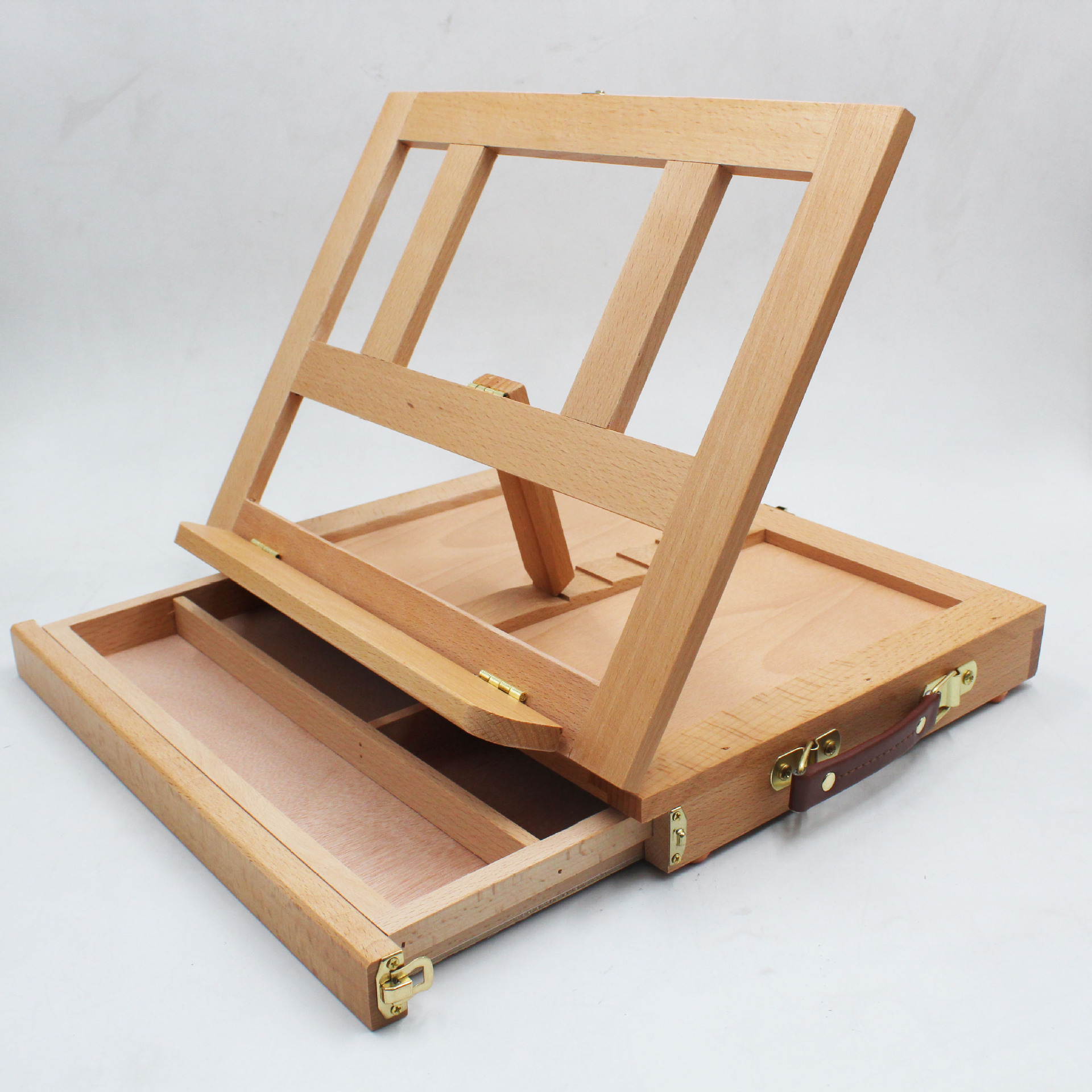 Een handig compacte tafel schildersezel die overal bij past. Deze Tafel schildersezel is voorzien van een uitschuiflade, om daar uw schilderskwasten handig in op te bergen. Daarnaast is deze schildersezel handzaam en dus eenvoudig overal mee naartoe te nemen.