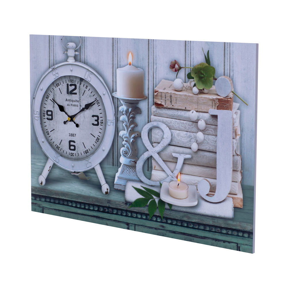 Decopatent XL Canvas Schilderij Wandklok CLOCK CANDLES & BOOKS met Klok - Wand Klok Landelijk / Brocante - Canvasklok - Canvas Wandklokken met Klok - Keukenklok - Muurklok Wand Klok - Afm. 60 x 40 Cm - Decopatent®