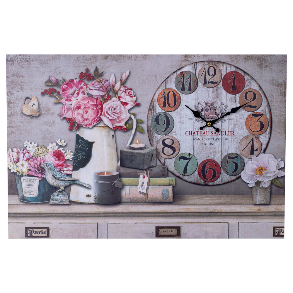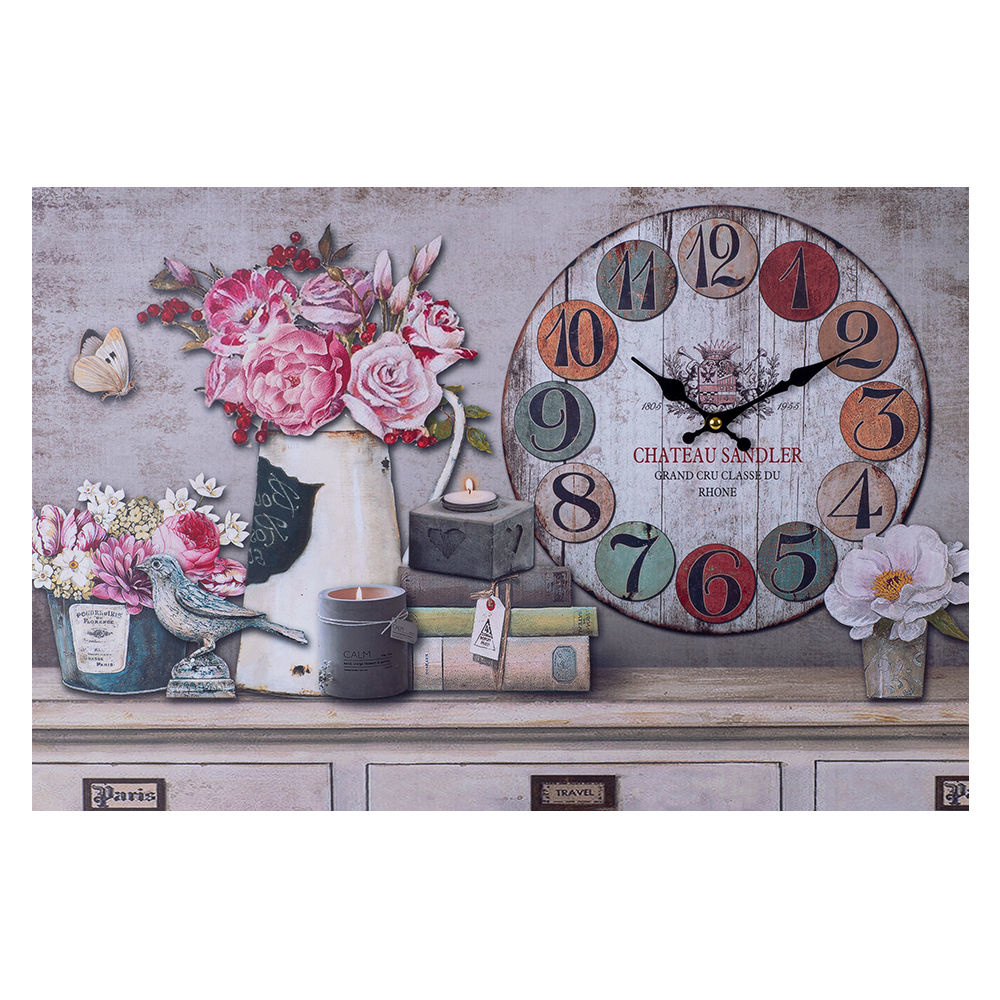 Decopatent XL Canvas Schilderij Wandklok FLOWERS CANDLES & BOOKS met Klok - Wand Klok Landelijk / Brocante - Canvasklok - Canvas Wandklokken met Klok - Keukenklok - Muurklok Wand Klok - Afm. 60 x 40 Cm - Decopatent®