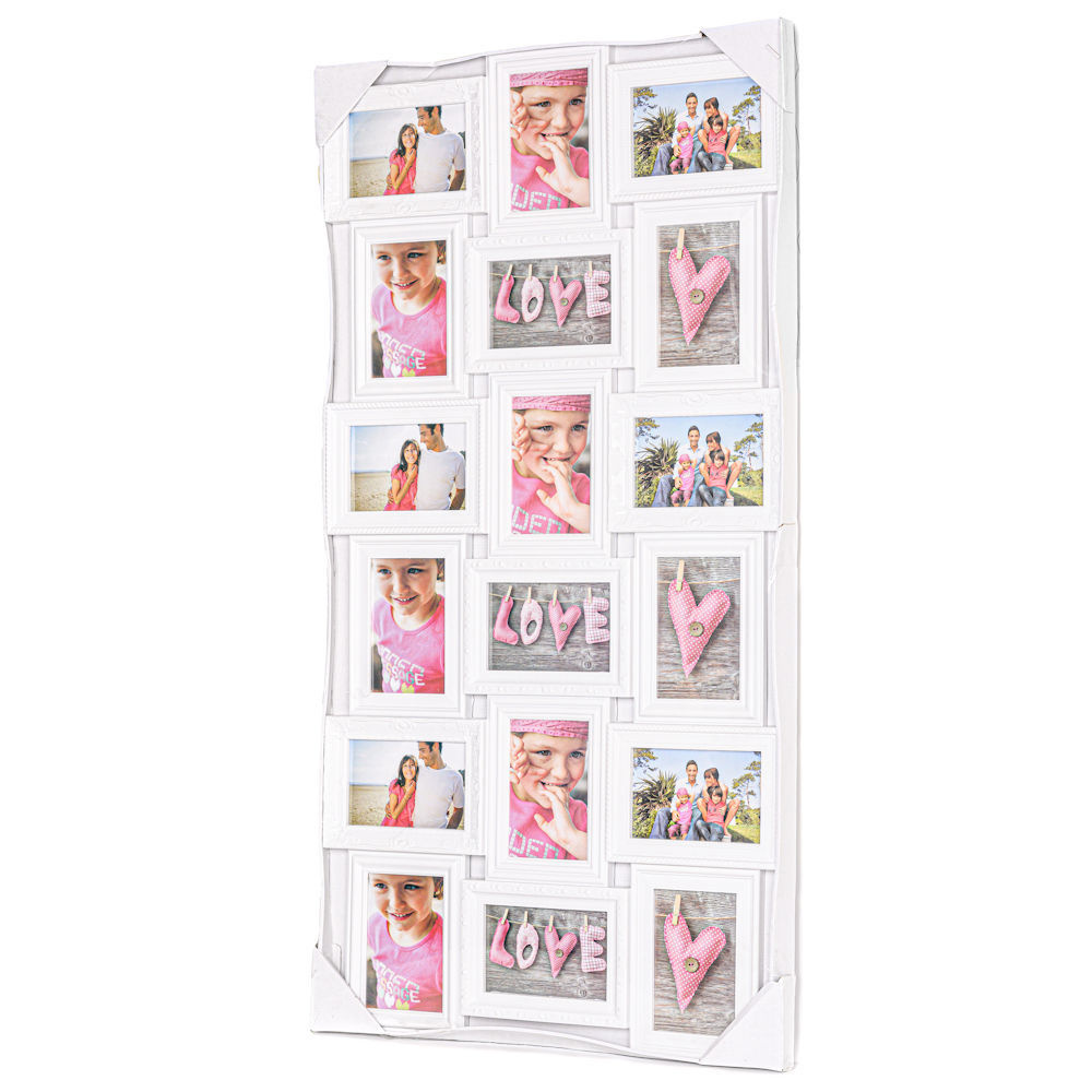 Decopatent Decopatent - XL Fotolijst Collage voor 18 Foto's van (10x15 & 15x10 Cm) - Fotolijsten - Fotolijstje met 18 fotokaders - 52 x 102 Cm - Wit
