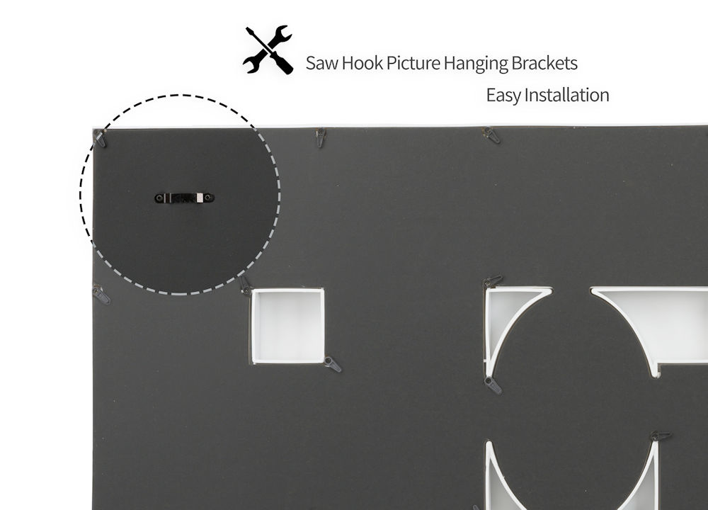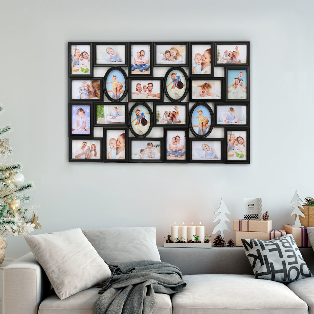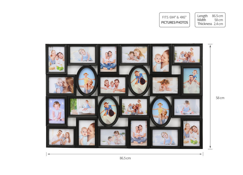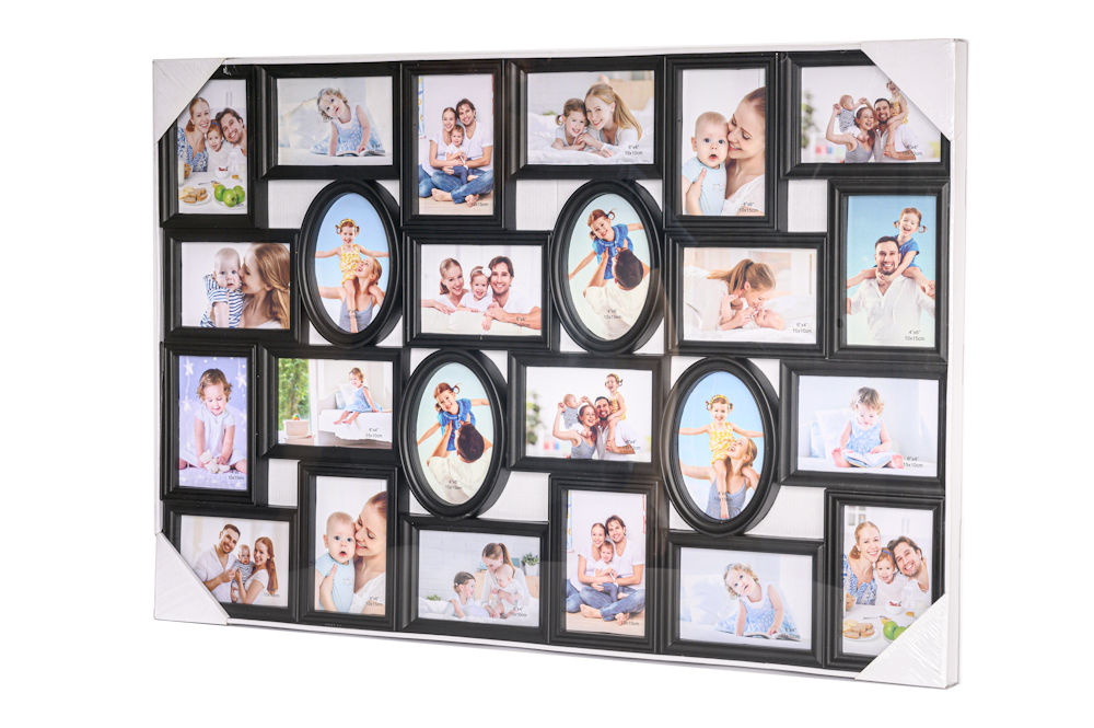 Alle foto‘s van die geweldige momenten welke je met je familie, vrienden of op vakantie hebt meegemaakt slingeren nu nog vaak rond in je la of op de harde schijf van je computer of telefoon? Deel met deze grote fotolijst deze prachtige foto's met de nieuwsgierige kijkers! Creëer zelf een persoonlijke fotocollage met behulp van deze uiterst decoratieve fotolijst. Hij biedt ruimte voor in totaal 24 foto‘s. Dankzij de ophang haken aan de achterkant kan je zelf bepalen of hij verticaal of horizontaal wordt opgehangen.
