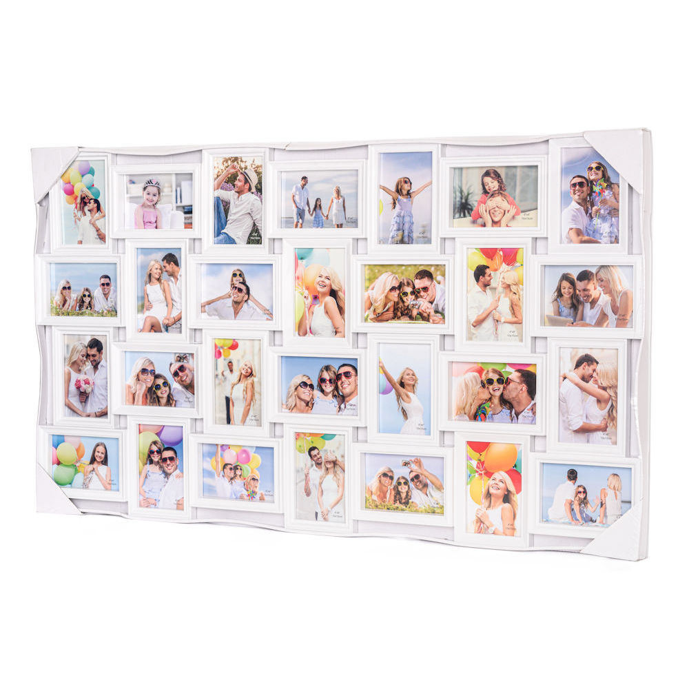 Alle foto‘s van die geweldige momenten welke je met je familie, vrienden of op vakantie hebt meegemaakt slingeren nu nog vaak rond in je la of op de harde schijf van je computer of telefoon? Deel met deze grote fotolijst deze prachtige foto's met de nieuwsgierige kijkers! Creëer zelf een persoonlijke fotocollage met behulp van deze uiterst decoratieve fotolijst. Hij biedt ruimte voor in totaal 28 foto‘s. Dankzij de ophang haken aan de achterkant kan je zelf bepalen of hij verticaal of horizontaal wordt opgehangen.