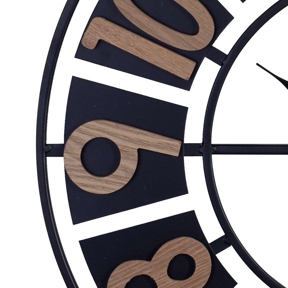 Deze zwart kleurige XL wandklok industrieel is gemaakt van metaal en hout. Omdat deze muurklok grote houten cijfers heeft creeert dit direct een klassiek / landelijk beeld aan uw muur. De wandklok is grotendeels open, daarom blijft uw muur achter deze wandklok zichtbaar. Uw nieuwe wandklok wordt dus één met de ruimte. Het maakt niet uit of je nu een Scandinavisch, modern, retro, landelijk of vintage interieur hebt, deze prachtige klok past er precies mooi bij.