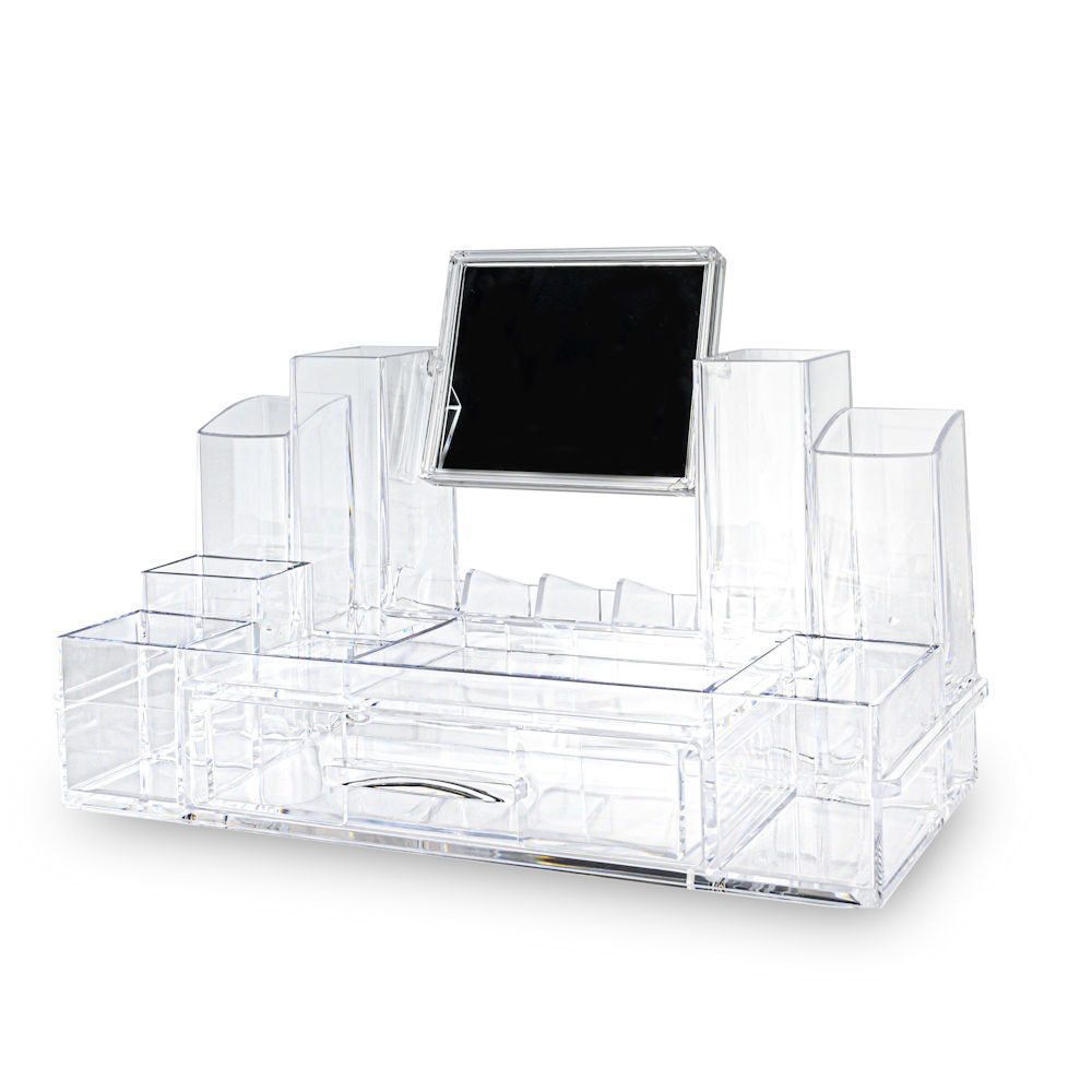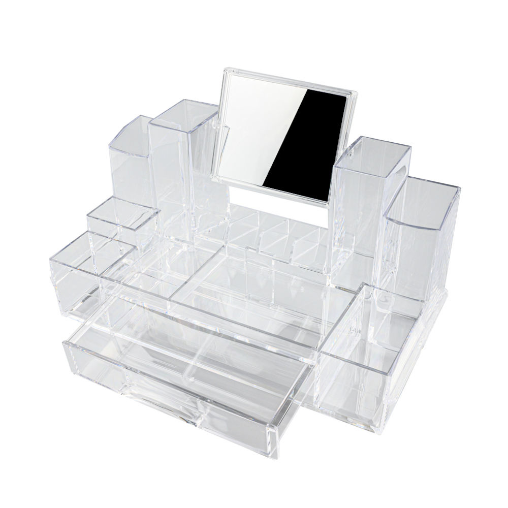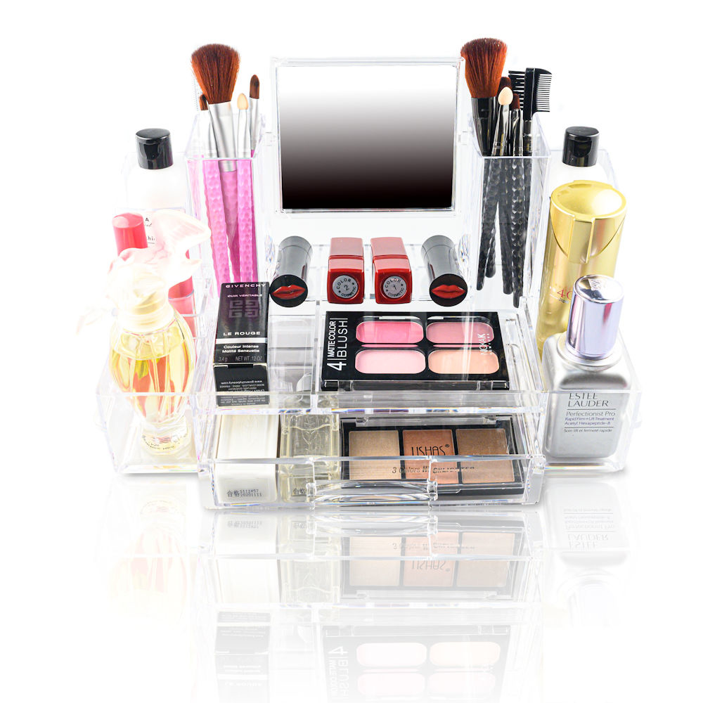 De voordelen van deze transparante Makeup organizer met Spiegel en Lade