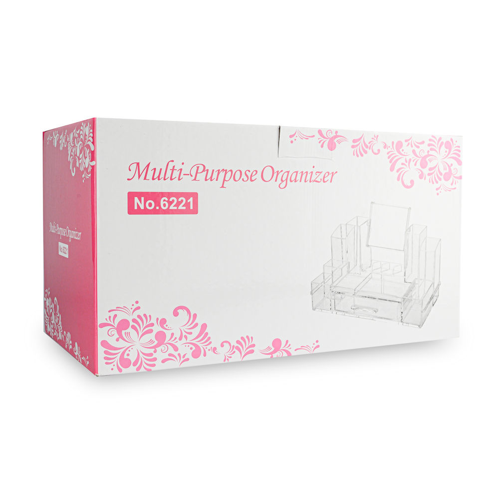 Een handige make up organizer die overal bij past. Deze Make-up organizer is ruim genoeg om je meest gebruikte cosmetica zoals oogschaduw, makeup kwasten, lippenstiften, parfum en veel meer in op te bergen. En voorzien van een make up spiegel. Ideaal dus voor in uw slaapkamer, badkamer of voor op uw kaptafel.