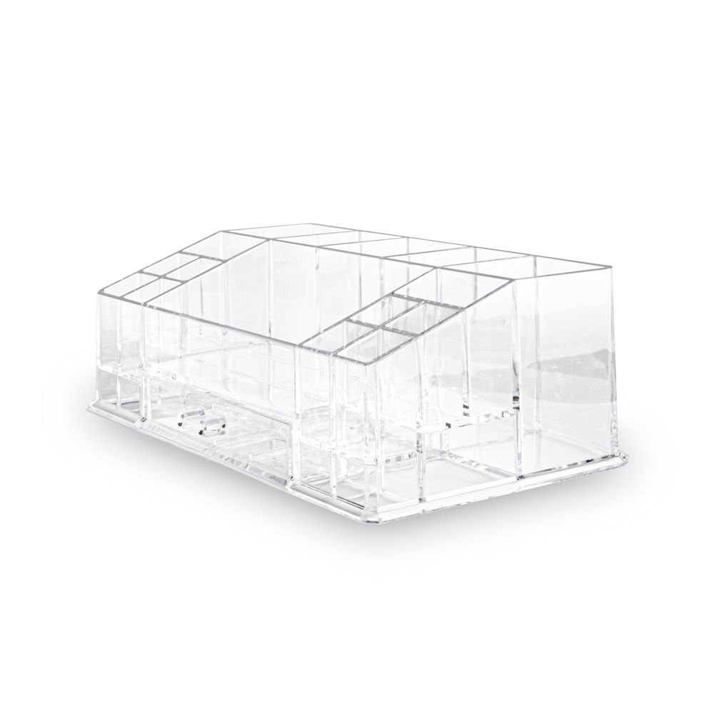 Door de professionele kwaliteit is deze makeup organizer geschikt voor gebruik in uw slaapkamer, badkamer of op uw kaptafel of bureau. Omdat hij gemaakt is van transparant kunsstof past hij in elke interieur.