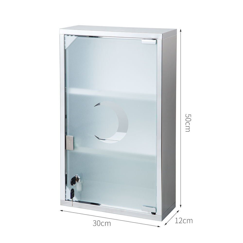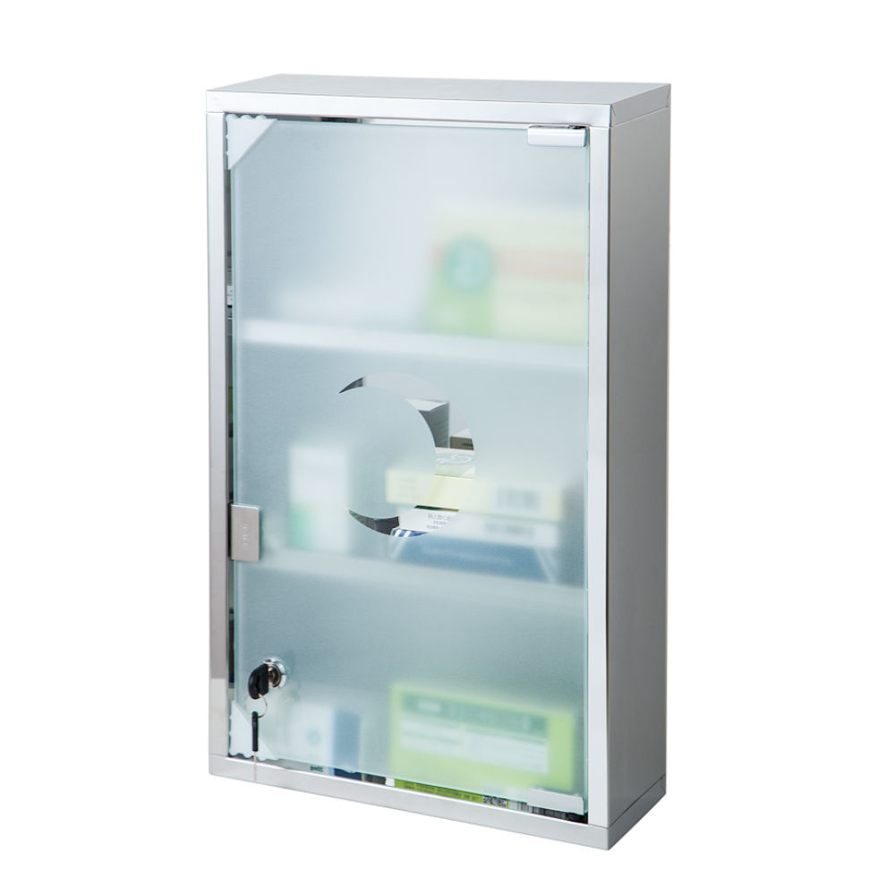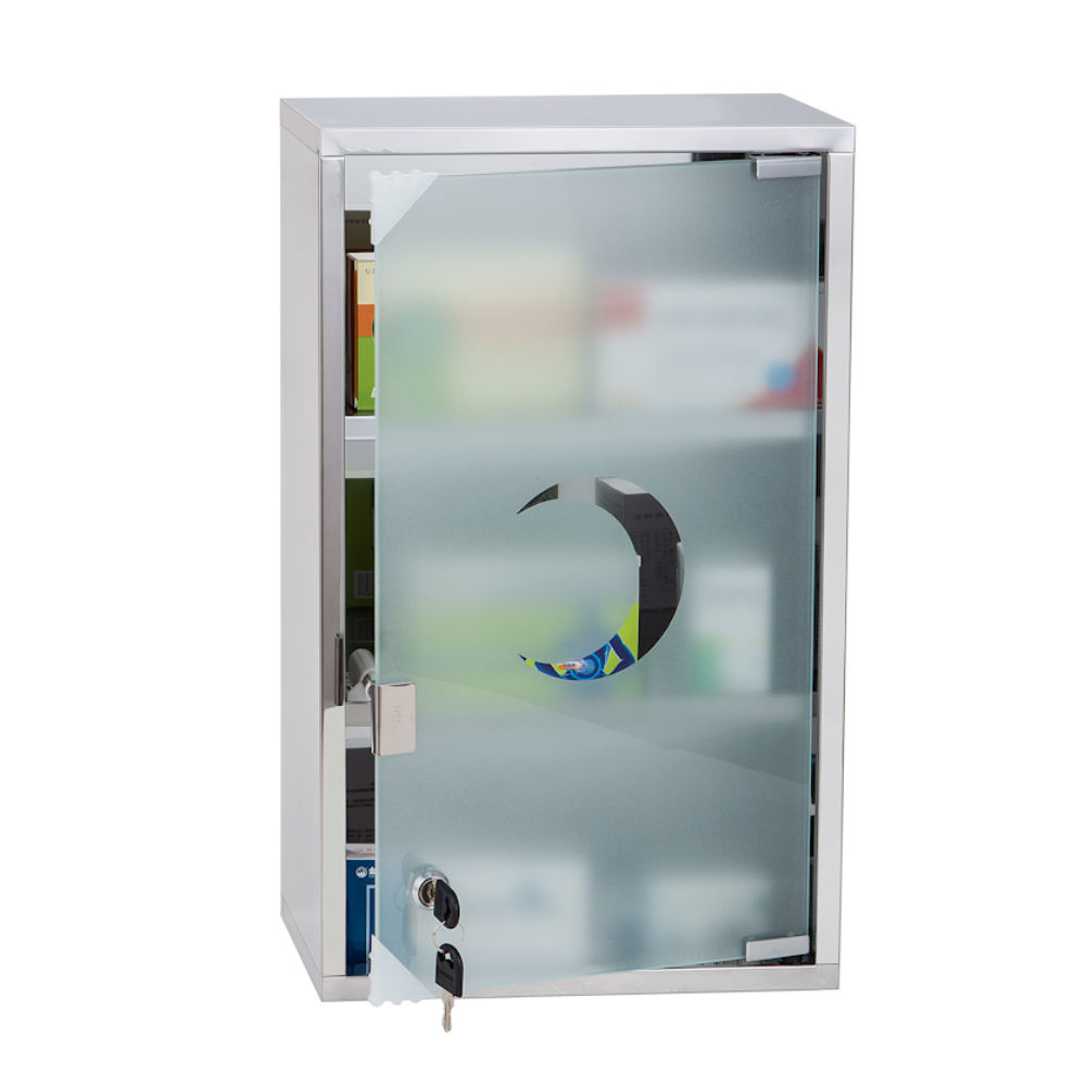 ✅ XL RVS hangende Medicijnkastje met Slot & Magnetische deur. Met deze medicijnkast zorgt u ervoor dat al uw medicijnen, pillen,etc. overzichtelijk en veilig opgeborgen zijn. En dus niet voor kinderen toegankelijk zijn. De medicijnkast is van (Rvs) roestvrij edelstaal en heeft 3 leg planken. De deur is van melkglas met een halve maan motief van helder glas.