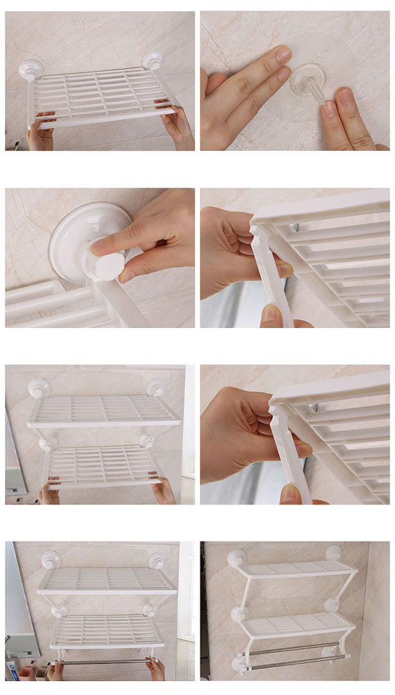 Geschikt voor gebruik in Badkamer of keuken. Het is toch altijd fijn om je handdoeken, , badkamer spullen of keuken spullen in de buurt te hebben. Dit hangende wand opberg rek is de perfecte oplossing ! Hang dir opbergrek eenvoudig op, met de meegeleverde zuignap. Binnen enkel seconden hangt u deze eenvoudig op aan uw muur of wand.