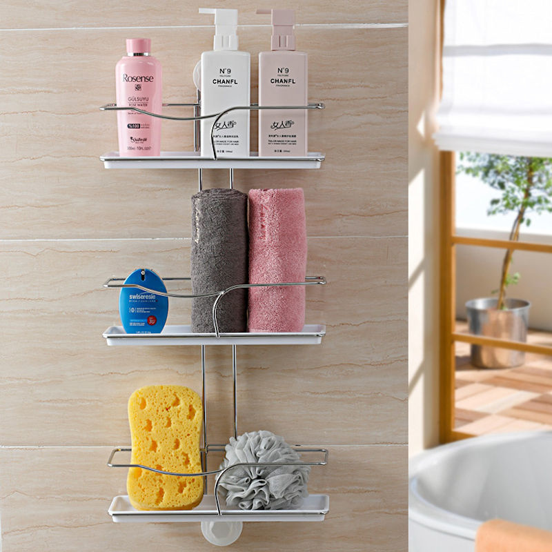 Het is altijd fijn om al je shampoo, douchegel, zeep of andere douchespullen in de buurt te hebben tijdens het douchen. Want als ze op de grond staan stoot je ze namelijk snel om of is het erg lastig om jouw shampoo van de grond te pakken in een smalle douche. Dit hangende 3 laags doucherekje is de perfecte oplossing ! Hang dit doucherekje met de meegeleverde 2 zuignappen binnen enkel seconden aan je douchedeur, douchewand of tegen de muur van uw douche.