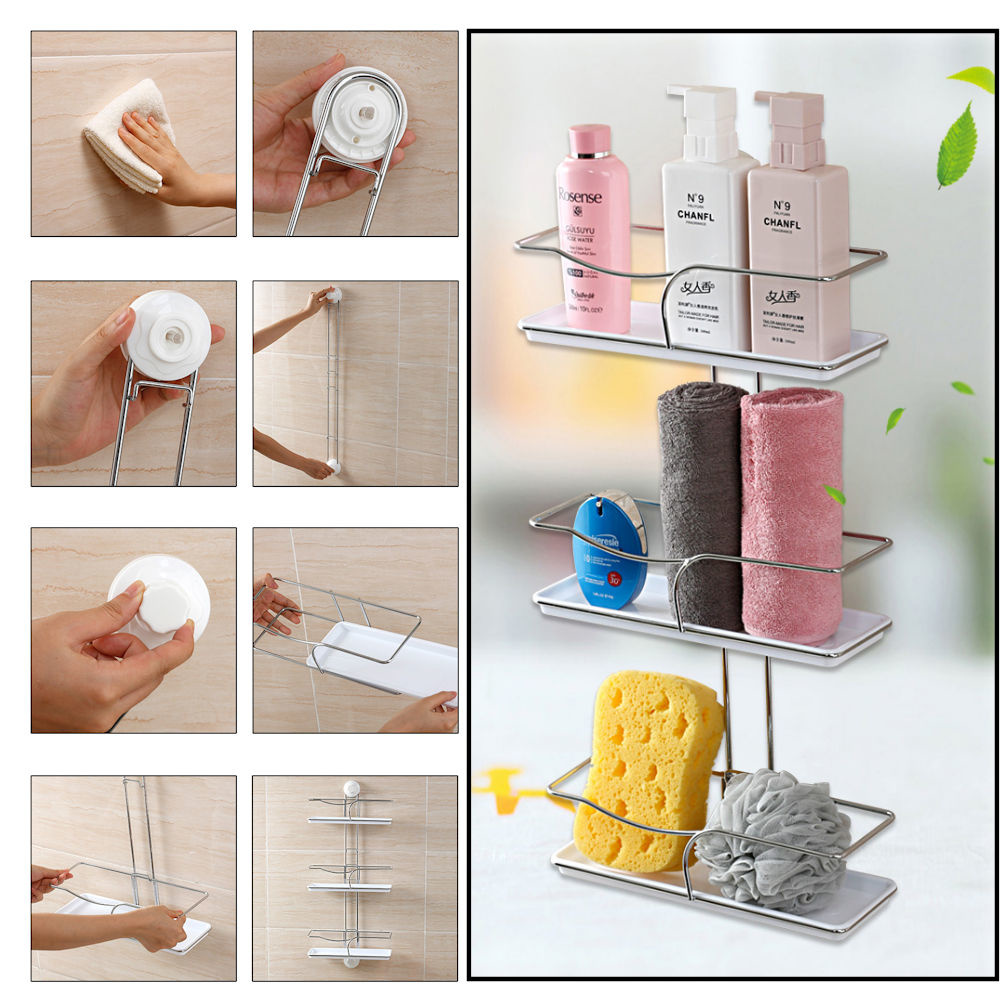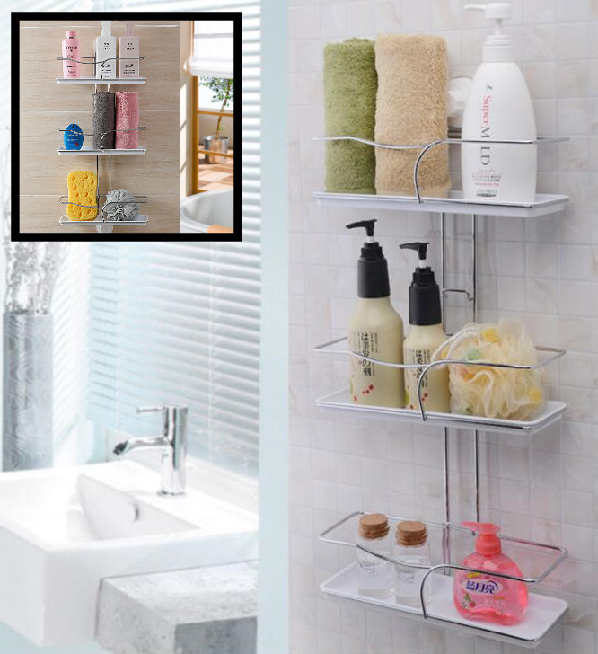 Ideaal doucherek met 3 lagen, zonder te hoeven boren in de muur ! U bevestigd hem dus erg snel & eenvoudig met de meegeleverde stips aan uw badkamer muur of Douche wand.