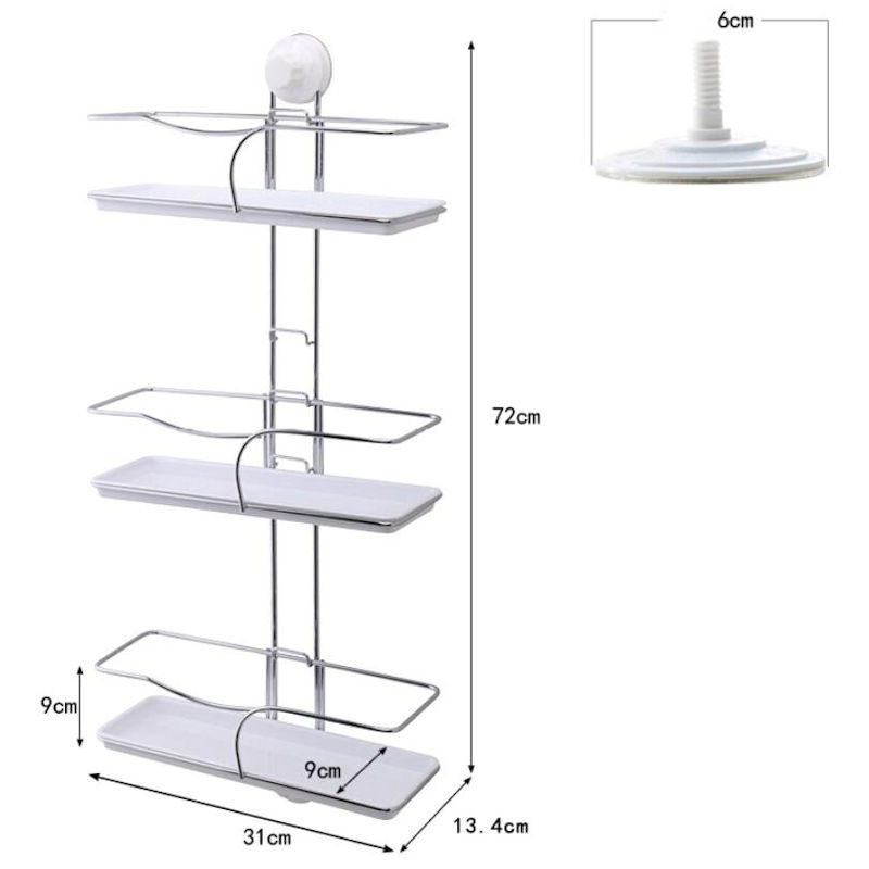 Dit 3 laags doucherek is gemaakt van stevig en roestvrij aluminium en kunststof. Dit voorkomt lelijke roestplekken en zorgt voor een erg lange levensduur van het 3 laags doucherek. Dit hangend doucherek is voorzien van een 3 opbergvakken met uitneembare leg bakje.
