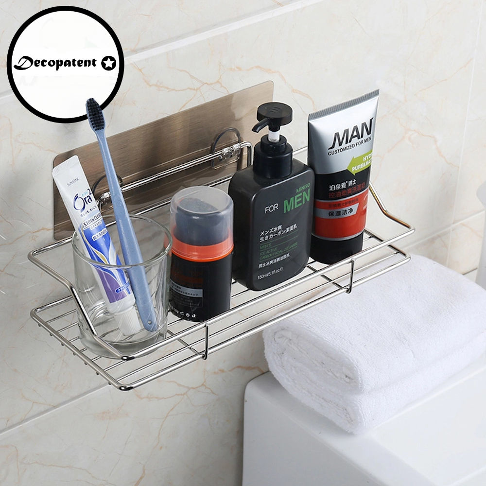 Decopatent Zelfklevend rechthoekig Doucherek - Ophangbaar Badrek / Douche rek - Hangend Badkamerrekje - Douchemandje - Doucherekjes geschikt voor Muur / Wand Bevestiging - Montage zonder Boren en Schroeven - Roestvrij Aluminium - Decopatent®