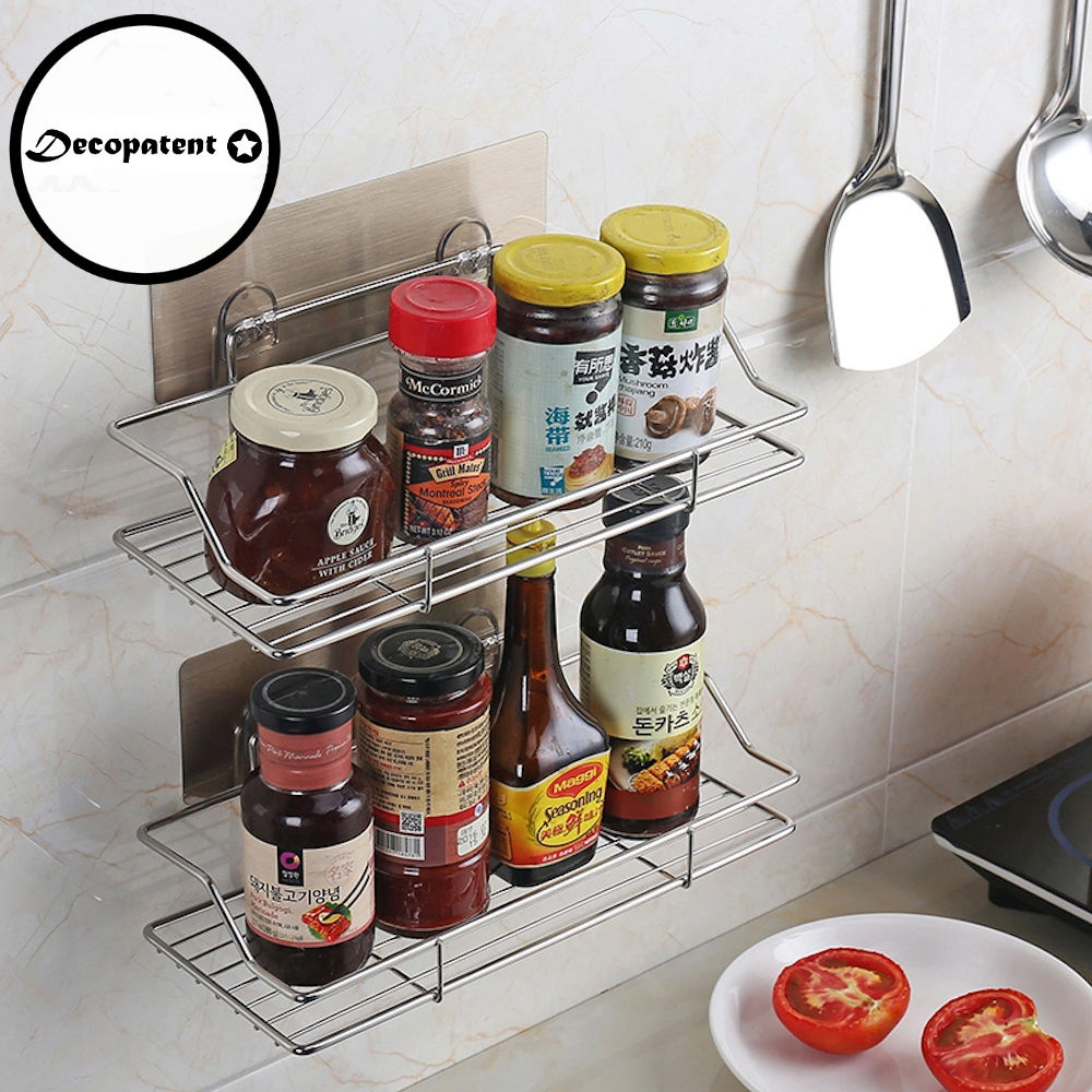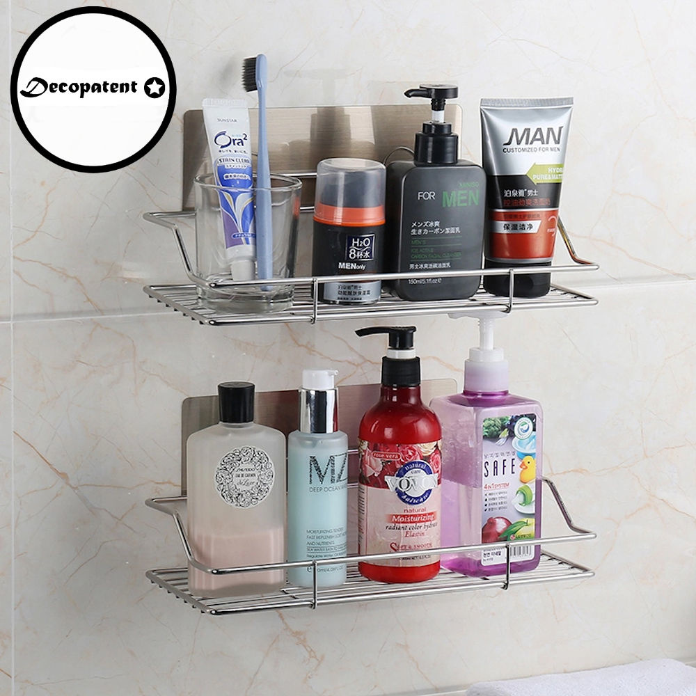 Decopatent Zelfklevend rechthoekig Doucherek - Ophangbaar Badrek / Douche rek - Hangend Badkamerrekje - Douchemandje - Doucherekjes geschikt voor Muur / Wand Bevestiging - Montage zonder Boren en Schroeven - Roestvrij Aluminium - Decopatent®