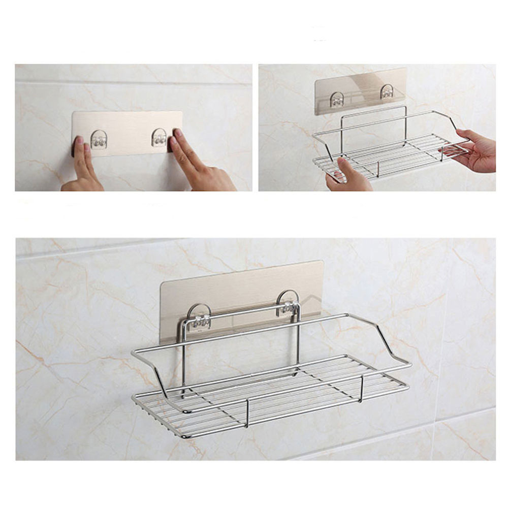 ✅ Zelfklevend hangend Douchrek, waarbij u geen gaten hoeft u te boren in uw muur. Montage is dus super simpel en snel, van dit zelfklevende rechthoekige doucherek. Want u doet dit eenvoudig Zonder te boren ! Het douche rek heeft een mooi strak design en is gemaakt van roestvrij aluminium. Daarnaast biedt dit doucherek u voldoende ruimte voor al uw doucheproducten en douche accessoires, zoals shampoo, douchegel, conditioner, badsponsen etc.